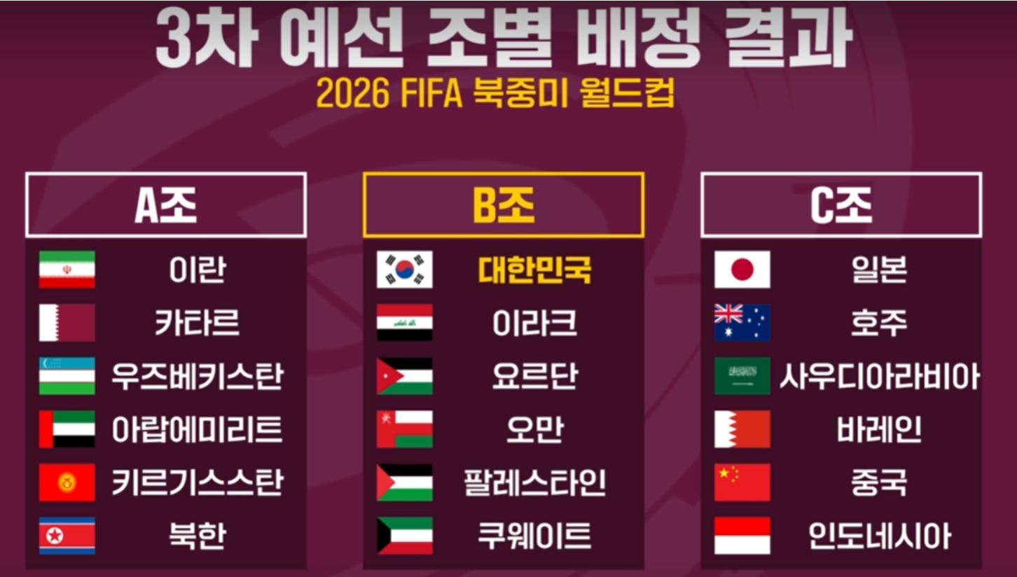 이번 월드컵부터는 본선 참가국이 48개로 확대되면서, 아시아에는 총 8.5장의 티켓이 주어졌습니다. 상위 2팀은 본선 직행, 3위와 4위는 플레이오프를 통해 추가 기회를 얻습니다.
